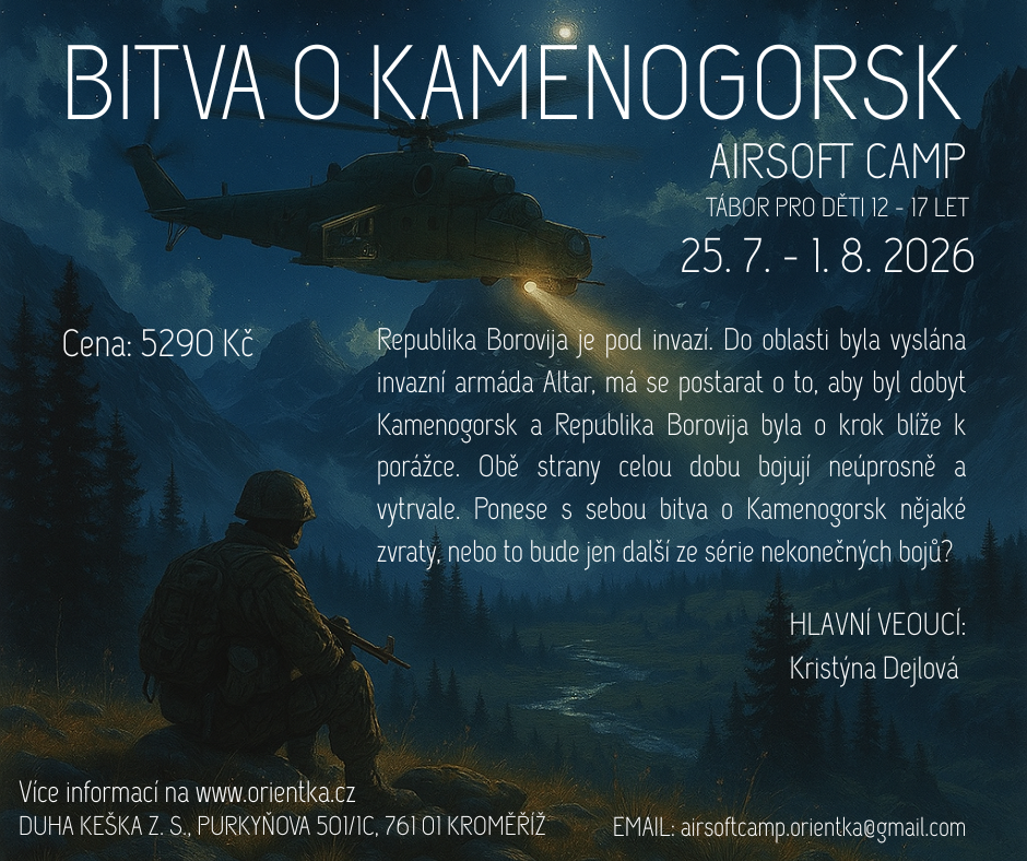 Hlavní vedoucí: Kristýna Dejlová (e-mail: airsoftcamp.orientka@gmail.com)